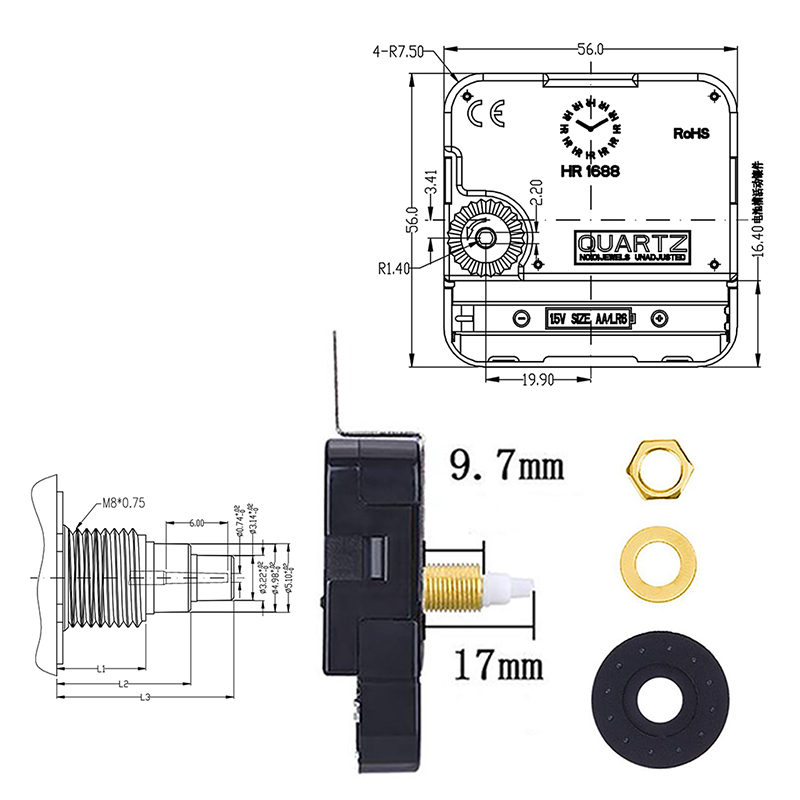 แรงบิดสูงนาฬิกาแกนฉันย้ายและตัวชี้นาฬิกาสีดำ